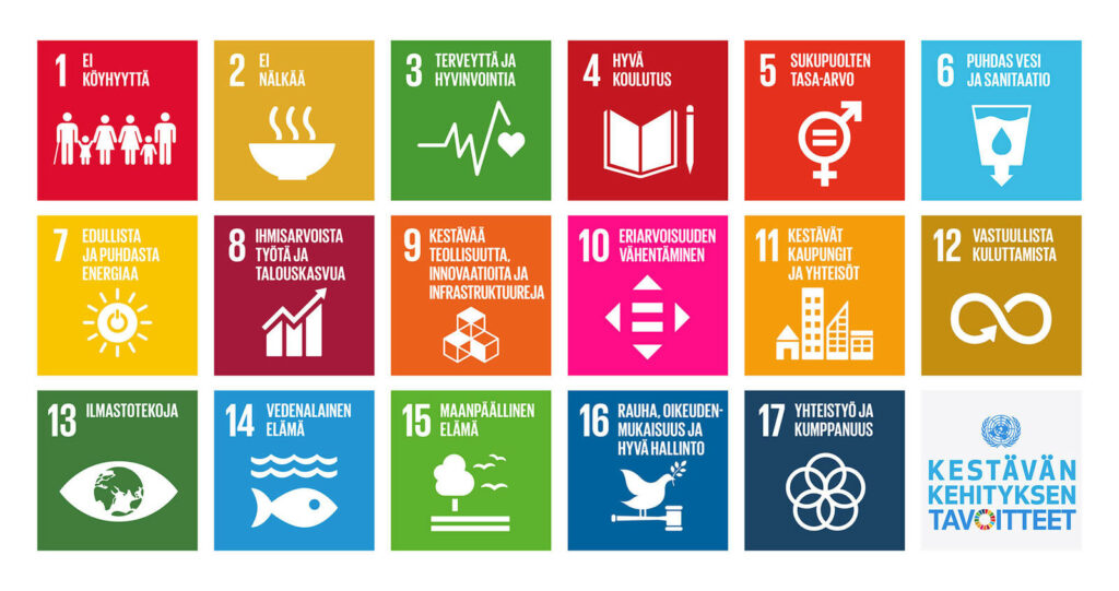 Meillä on toiminnan läpileikkaava vastuullisuusohjelma joka nojaa YK:n kestävän kehityksen Agenda 2030 -tavoitteisiin.